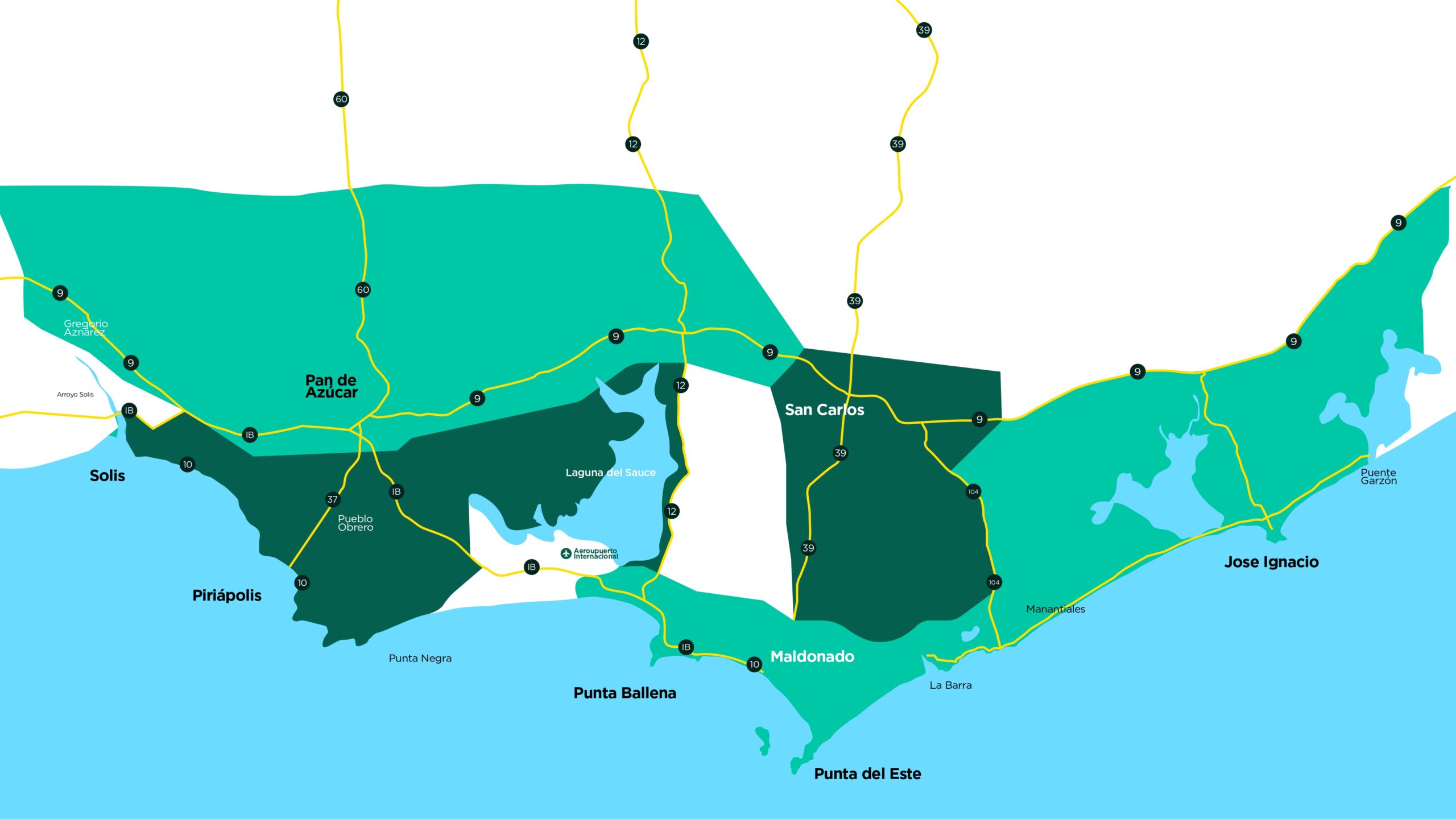 - Al OESTE hasta Pueblo Gregorio Aznárez inclusive Ruta 9 Interbalnearia